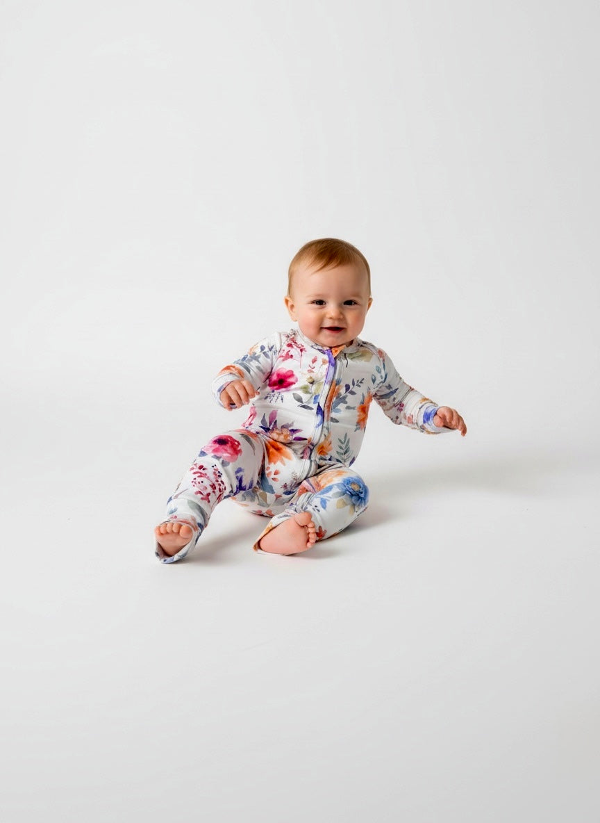 French Floral Bamboo Baby One Piece Outfit.